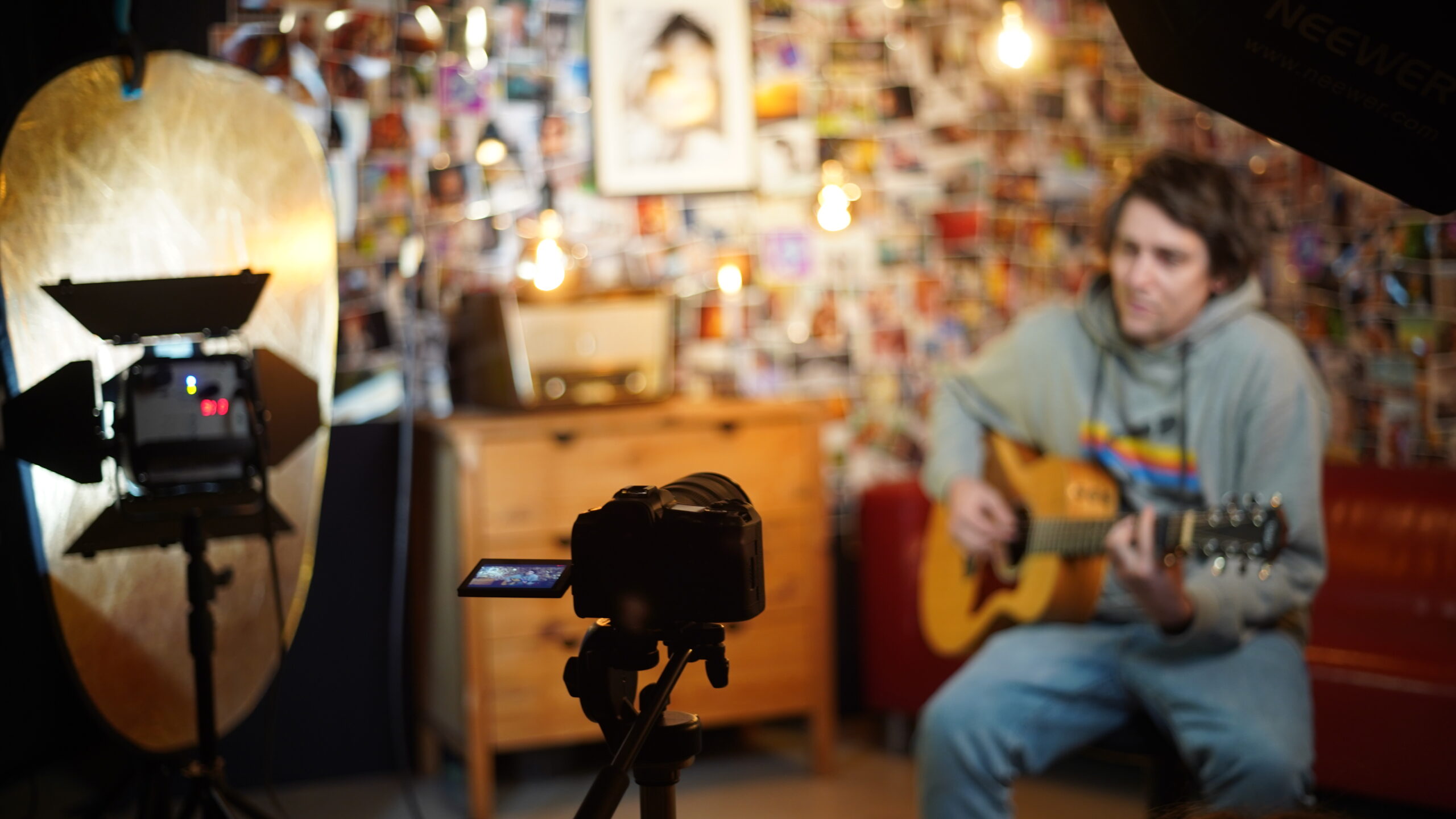 Für den neuen Song “My World”  des Wiener Singer/Songwriter Owiwi durfte ich als Kameramann und Setdesigner arbeiten. Das Video soll einen einblick in seine Welt bilden deshalb wurden zuerst zwei Wände aufgebaut und diese dann mit Hunderten privaten Fotos des Künsterls bestückt.